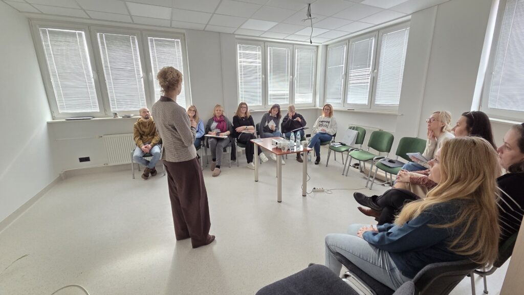 W dniu 25 września 2025 roku Wanda Agnieszka Jabłońska i Sylwia Przybylińska zaprezentowały działalność Ośrodka Wsparcia i Testów w Olsztynie w gronie nauczycieli Zespołu Placówek Edukacyjnych w Olsztynie. Omówiono, kto i kiedy może skorzystać ze wsparcia, a także przebieg kontaktu, testowania sprzętu i procesu wypożyczeń. Ponownie podkreślono, że OWiT prowadzi nieodpłatną wypożyczalnię specjalistycznych sprzętów, urządzeń i oprogramowania do użytkowania w warunkach domowych. Podkreślono, że dysponuje sprzętem najwyższej jakości, odpowiadającym zróżnicowanym potrzebom funkcjonalnym osób z niepełnosprawnościami. Szczególnie mocno zaakcentowano prośbę, aby informować o Wypożyczalni nie tylko instytucje, lecz także sąsiadów, członków rodzin i znajomych. To właśnie dzięki takiej „poczcie pantoflowej” wiele osób dowiaduje się o bezpłatnym wsparciu, które realnie poprawia komfort codziennego życia. Spotkanie zakończyło krótkie przesłanie: „Powiedz o tym dalej – jedna rozmowa może komuś otworzyć drogę do większej samodzielności.”